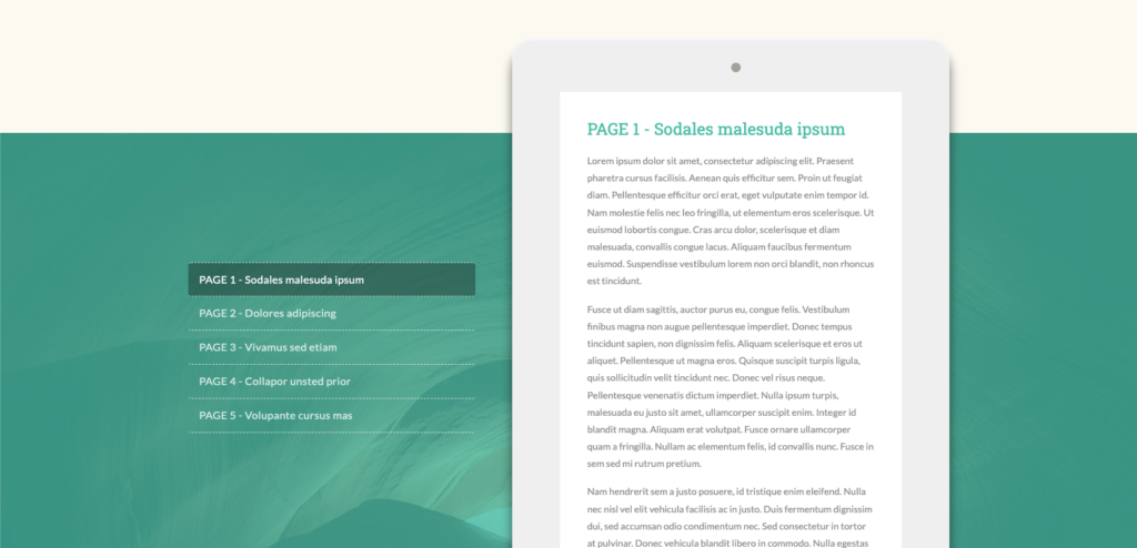 This widget adds a section with a tablet frame, which previews your sample contents added in tabs.