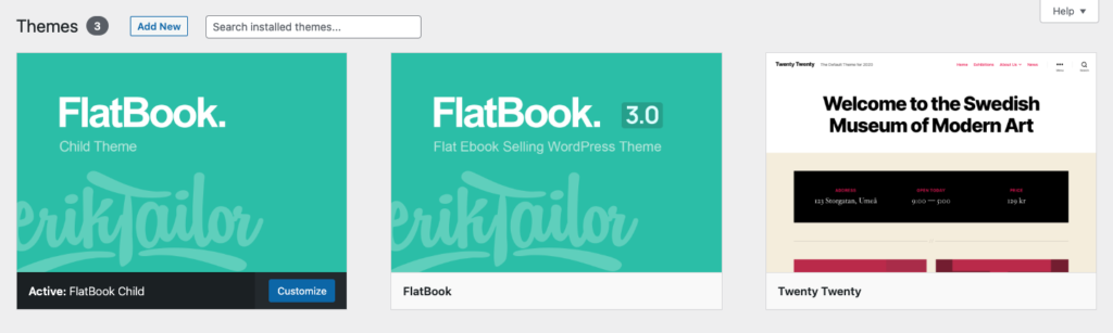 If you already have some experience with WordPress and decided to use FlatBook with a child theme, feel free to install the flatbook-child.zip archive from the /Theme folder of the main package, you downloaded from ThemeForest.